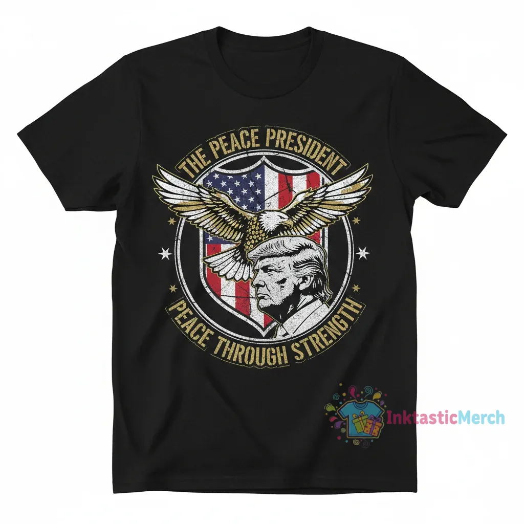 Embody the vision of a stronger, more peaceful world with the Trump The Peace President Shirt, inspired by the powerful concept of “Peace Through Strength.” This tee offers unparalleled comfort, crafted from the finest, pre-shrunk cotton for a luxurious feel. Discover quality and style at inktasticmerch.com.