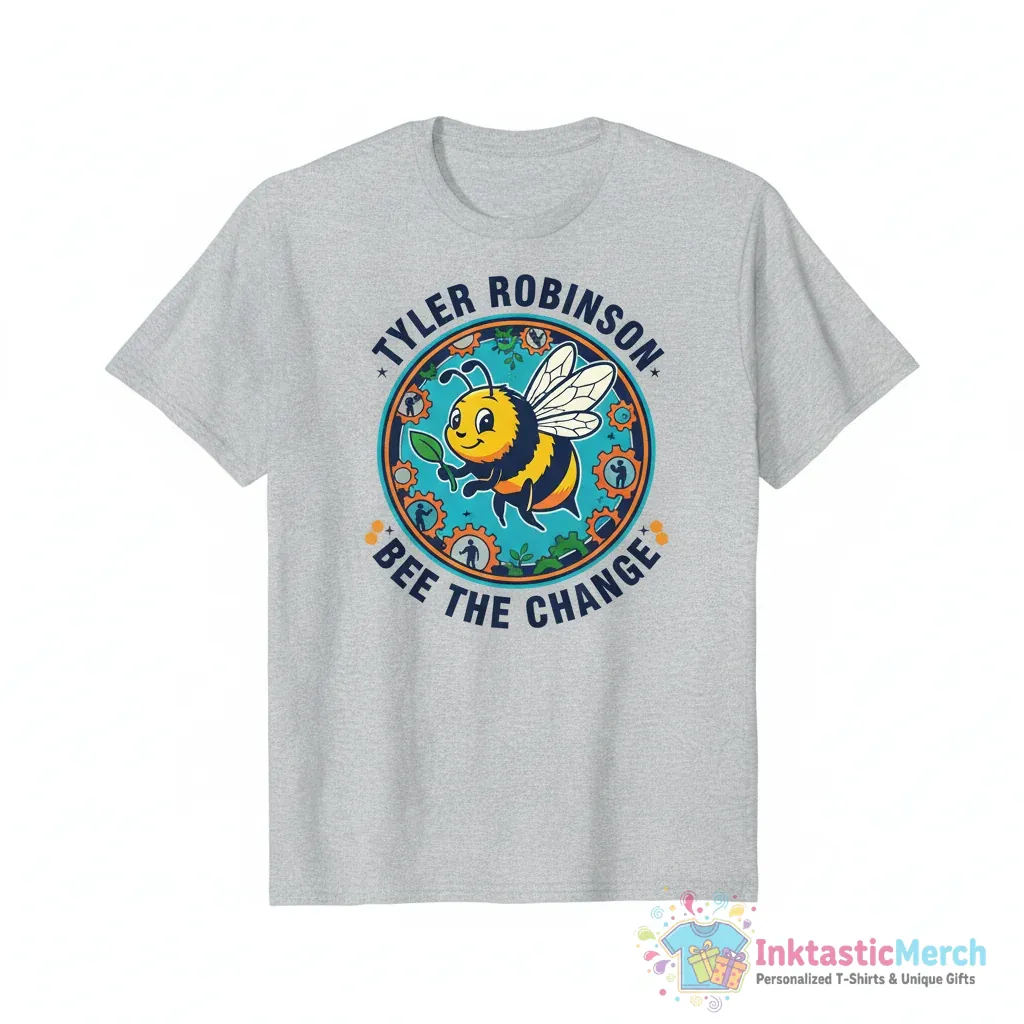 Embrace positivity and make a statement with the Tyler Robinson Bee The Change T-shirt. Crafted from incredibly soft, high-quality, and breathable fabric, this shirt ensures all-day comfort and lasting wear, making it a perfect addition to any wardrobe. Featuring unique bee-themed artwork and a flattering unisex fit, this tee from inktasticmerch.com is ideal for anyone who believes in spreading a positive message and supporting a movement for good.
