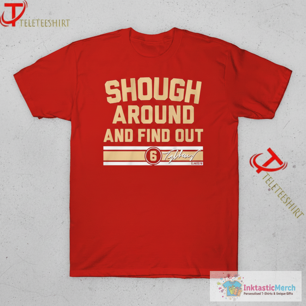 - Eye-catching “Tyler Shough Around And Find Out” graphic design.