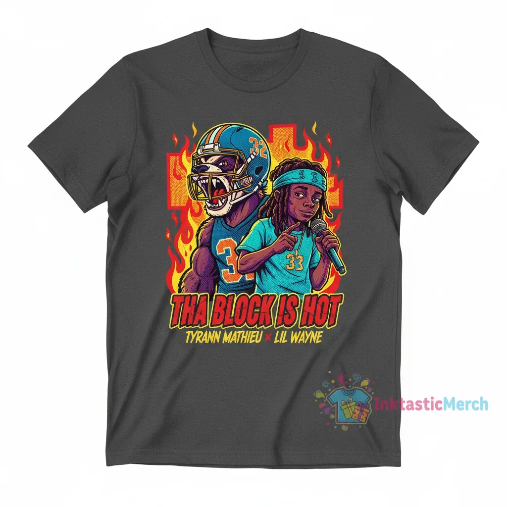 Show off your love for hip-hop and football with the iconic Tyrann Mathieu Lil Wayne Tha Block Is Hot shirt. This tee captures the legendary energy of both icons, blending sports swagger with pure musical fire. It’s more than just a t-shirt; it’s a statement piece that resonates with fans who appreciate top-tier talent and unforgettable moments. Perfect for casual wear, concerts, or game days, this shirt lets you carry a piece of hip-hop and sports history with you wherever you go. Get ready to turn heads and spark conversations with this unique design.
