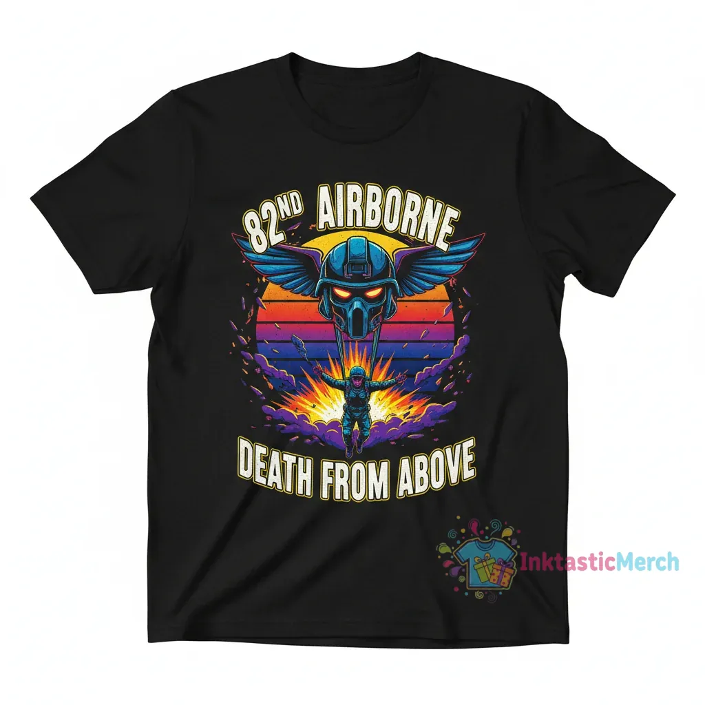 The U.S. Army 82nd Airborne Division ‘Death From Above’ Shirt from InktasticMerch is more than just a graphic; it’s a tribute to bravery and the relentless spirit of those who serve. Crafted with a premium fabric blend, this tee offers unparalleled comfort, feeling incredibly soft against your skin for all-day wear. Its durable construction and expertly printed original artwork ensure a lasting tribute that honors the powerful legacy of the 82nd Airborne.