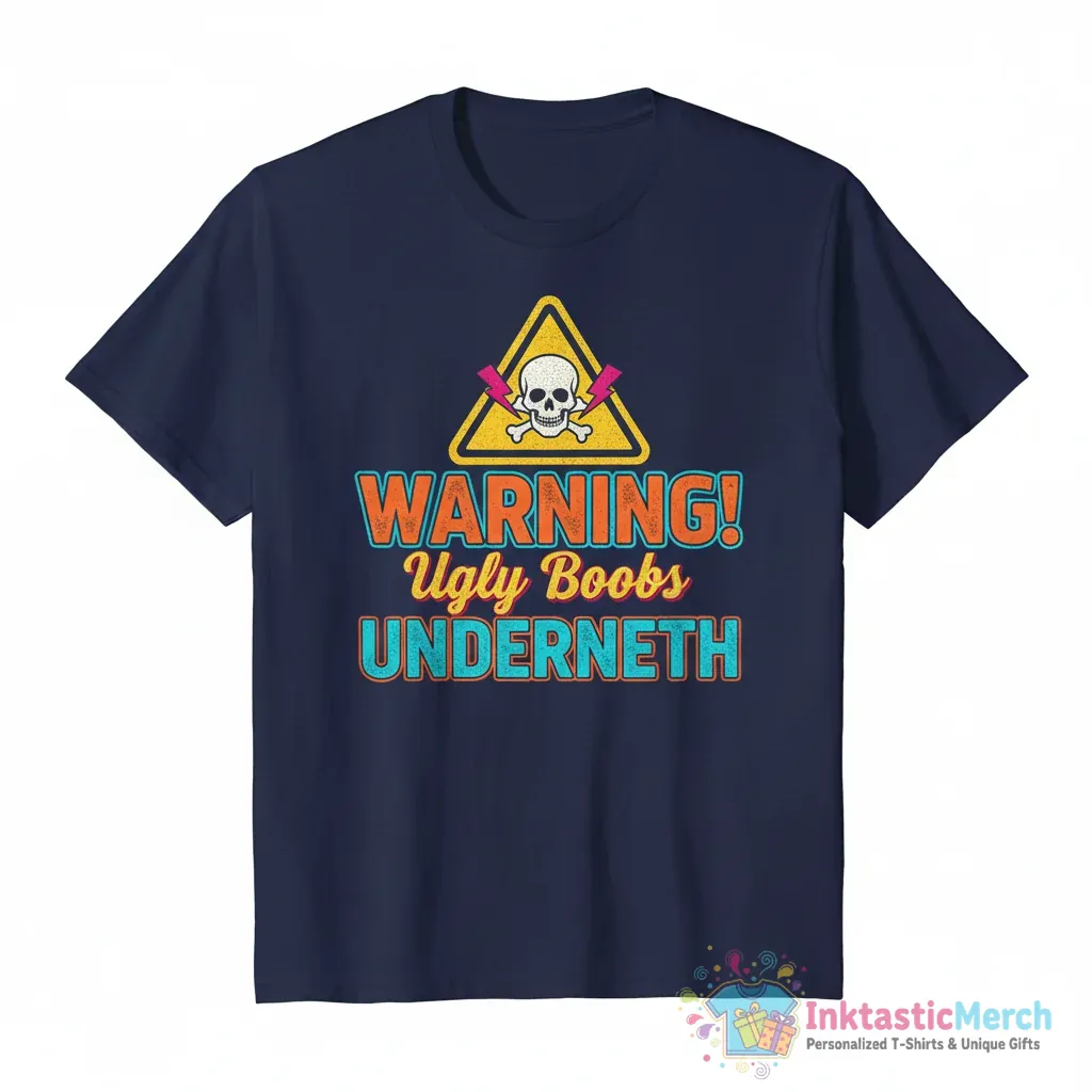 Show off your unique sense of humor with the “Warning Ugly Boobs Underneath Shirt” from inktasticmerch.com. Made from premium quality materials, this tee offers a comfortable and stylish way to make a statement, ensuring a standout piece in any wardrobe.
