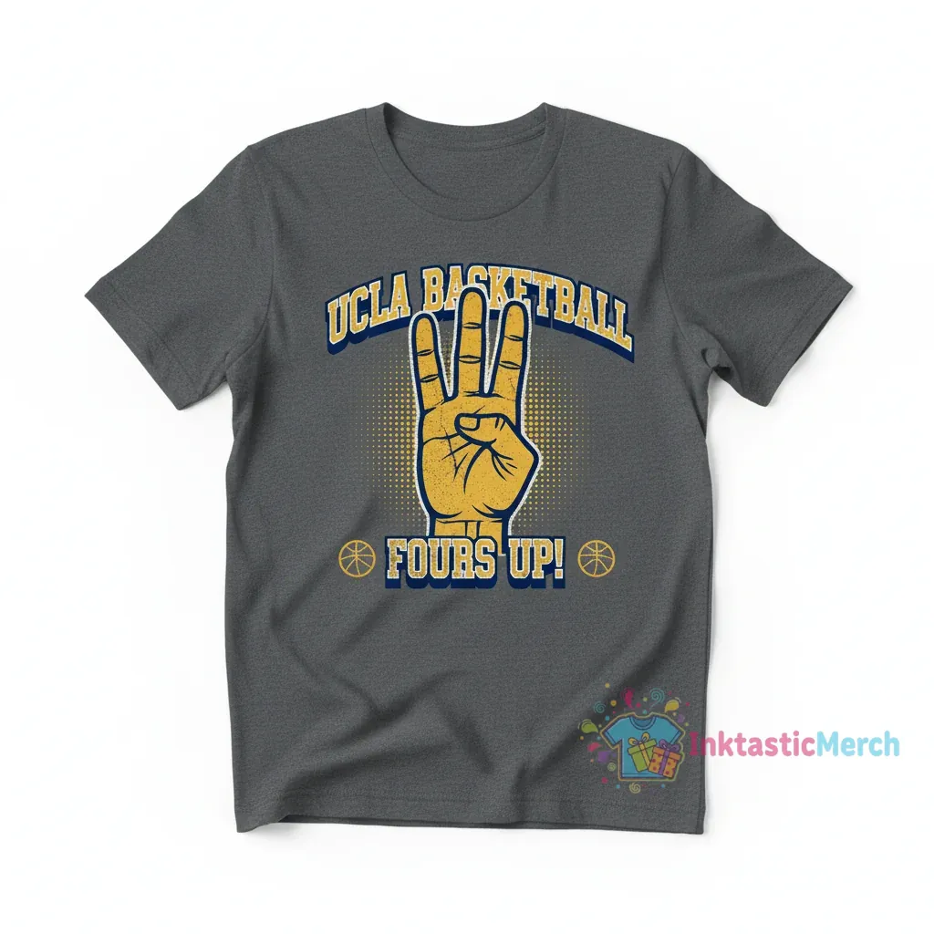Show your UCLA pride with the exclusive UCLA Basketball 4s Up T-Shirt, crafted from premium, ultra-soft fabric for maximum comfort and durability. This tee from <a href="InktasticMerch“>InktasticMerch features a unique, eye-catching graphic design, embodying the spirit of UCLA basketball and ensuring it holds up wash after wash while maintaining its vibrant print.