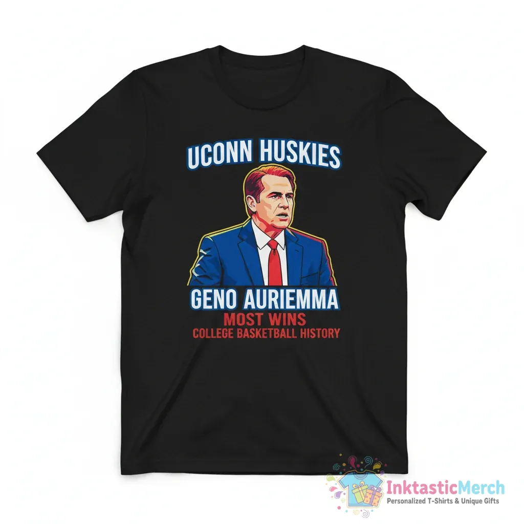 Celebrate a legendary coach with the UConn Basketball Geno Auriemma Most Wins in College Basketball History Shirt. This premium tee honors Coach Geno Auriemma’s incredible achievement, making it a must-have for any dedicated UConn fan or college basketball enthusiast. Show your support and pride with a shirt that represents true greatness on and off the court. It’s more than just a T-shirt; it’s a piece of basketball history you can wear.