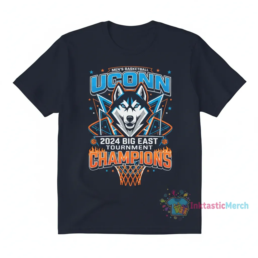 UConn Huskies Men’s Basketball 2024 Big East Tournament Champions! This isn’t just a shirt; it’s a wearable testament to grit, teamwork, and the electrifying moments that defined a championship season. We’ve captured the raw energy of that historic victory, transforming it into a design that speaks to the heart of every true fan. Imagine the roar of the crowd, the sweat, the triumph – it’s all woven into the very fabric of this tee, celebrating a legacy of excellence. This artwork is born from a deep admiration for the Huskies’ unwavering spirit and their remarkable journey to the top of the Big East.