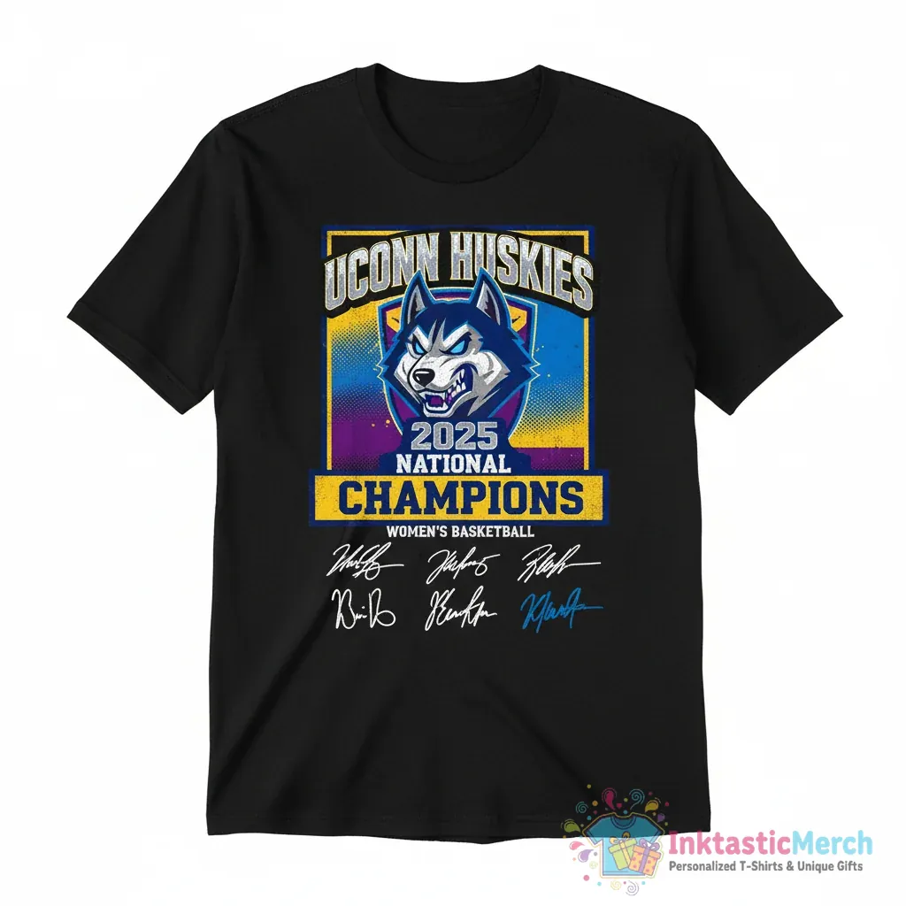Celebrate the Uconn Huskies Women’s Basketball 2025 National Champions in style with this exclusive signature t-shirt from InktasticMerch. Crafted from ultra-soft, premium cotton for superior comfort and featuring a durable, high-quality print, this shirt is designed to be a favorite you’ll reach for again and again to show your victory loud and proud.