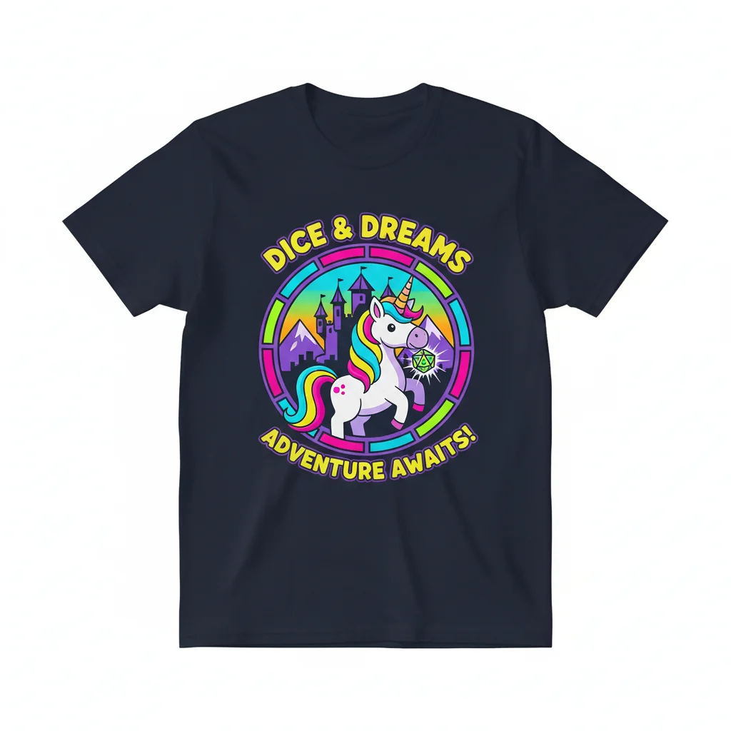 To keep your unicorn looking magical, machine wash cold, inside-out, with similar colors on a gentle cycle. Use mild detergent and avoid bleach. For best results and to preserve the print’s integrity, tumble dry on low heat or hang-dry. If ironing is necessary, do not iron directly on the graphic. This versatile tee is perfect for D&D game nights, comic conventions, or as a casual statement piece. Pair it with jeans for a classic look or layer it under a jacket for a touch of geek-chic style that sparks conversation.