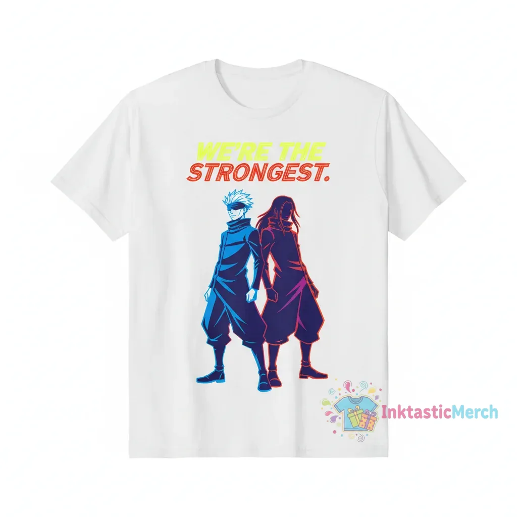 Show off your love for Jujutsu Kaisen with this awesome graphic tee featuring the iconic “We’re The Strongest” slogan, a must-have for any fan. Crafted from super soft, breathable fabric, this shirt ensures ultimate comfort and lasting style, with a vibrant print that stays sharp wash after wash, all available from InktasticMerch.