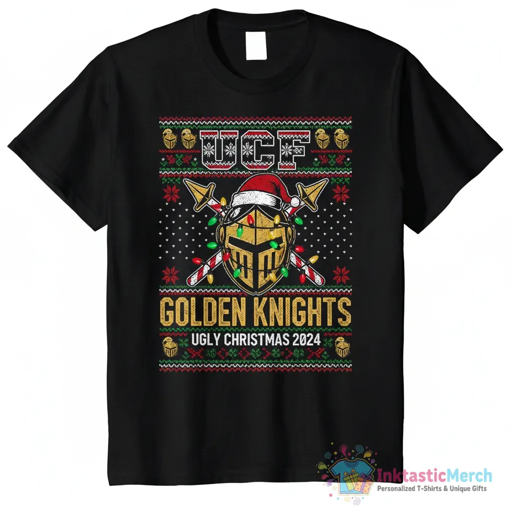 Show your team spirit with this fun University Central Florida Golden Knights ugly Christmas shirt from InktasticMerch! Designed for ultimate comfort and a festive look, this shirt is perfect for any Knights fan wanting to add some holiday cheer to their game day or celebrations. Crafted with high-quality fabric, it features a unique, playfully “ugly” UCF Golden Knights theme that’s sure to get you noticed.