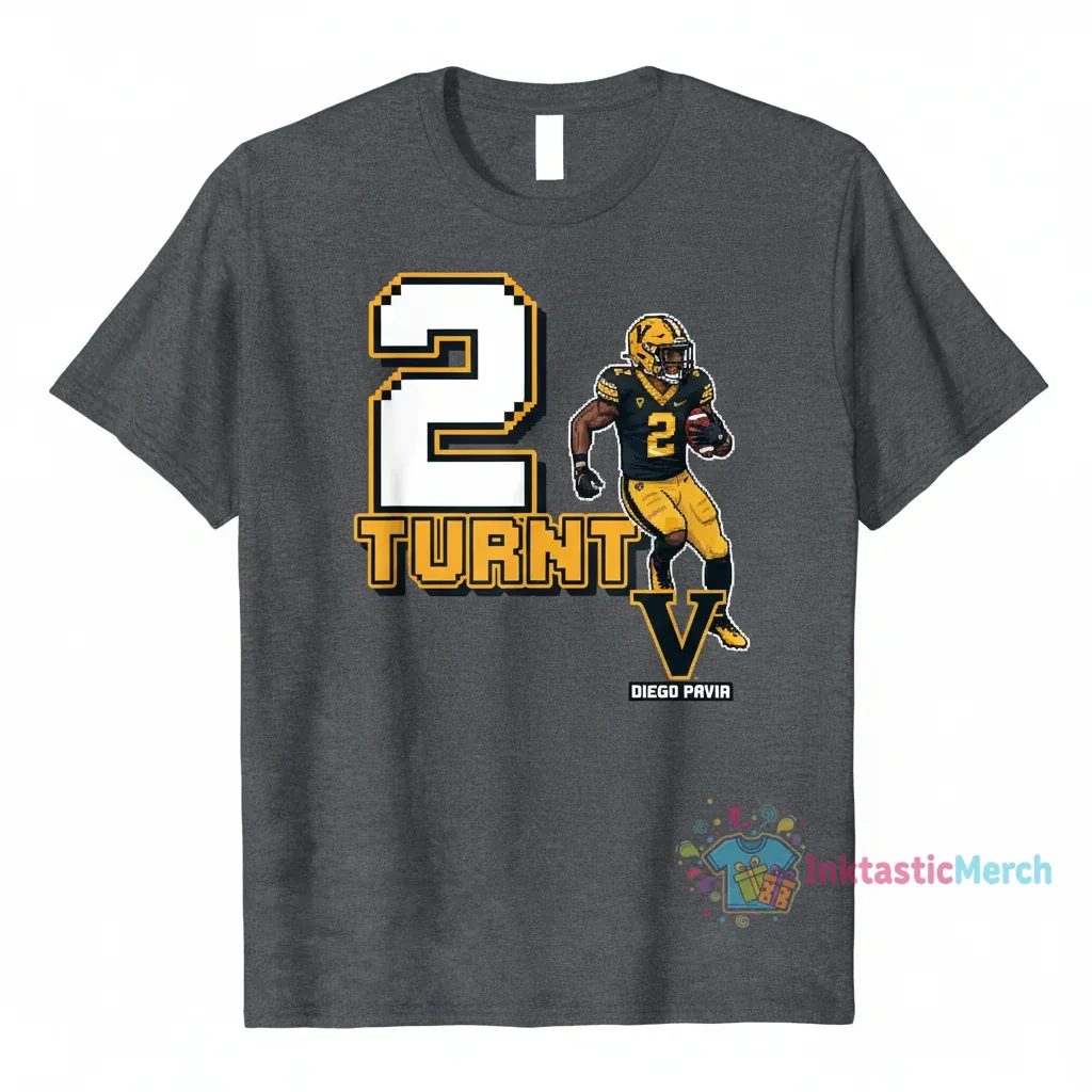 Inspired by the raw energy of Diego Pavia and the iconic Vanderbilt Commodores, this “2 Turnt Diego Pavia” Football Tee blends athletic heritage with cutting-edge streetwear. Crafted from premium, ultra-soft fabric, this tee from InktasticMerch offers unmatched softness and durability for a look that’s both classic and undeniably fresh, perfect for game day or everyday streetwear cool.
