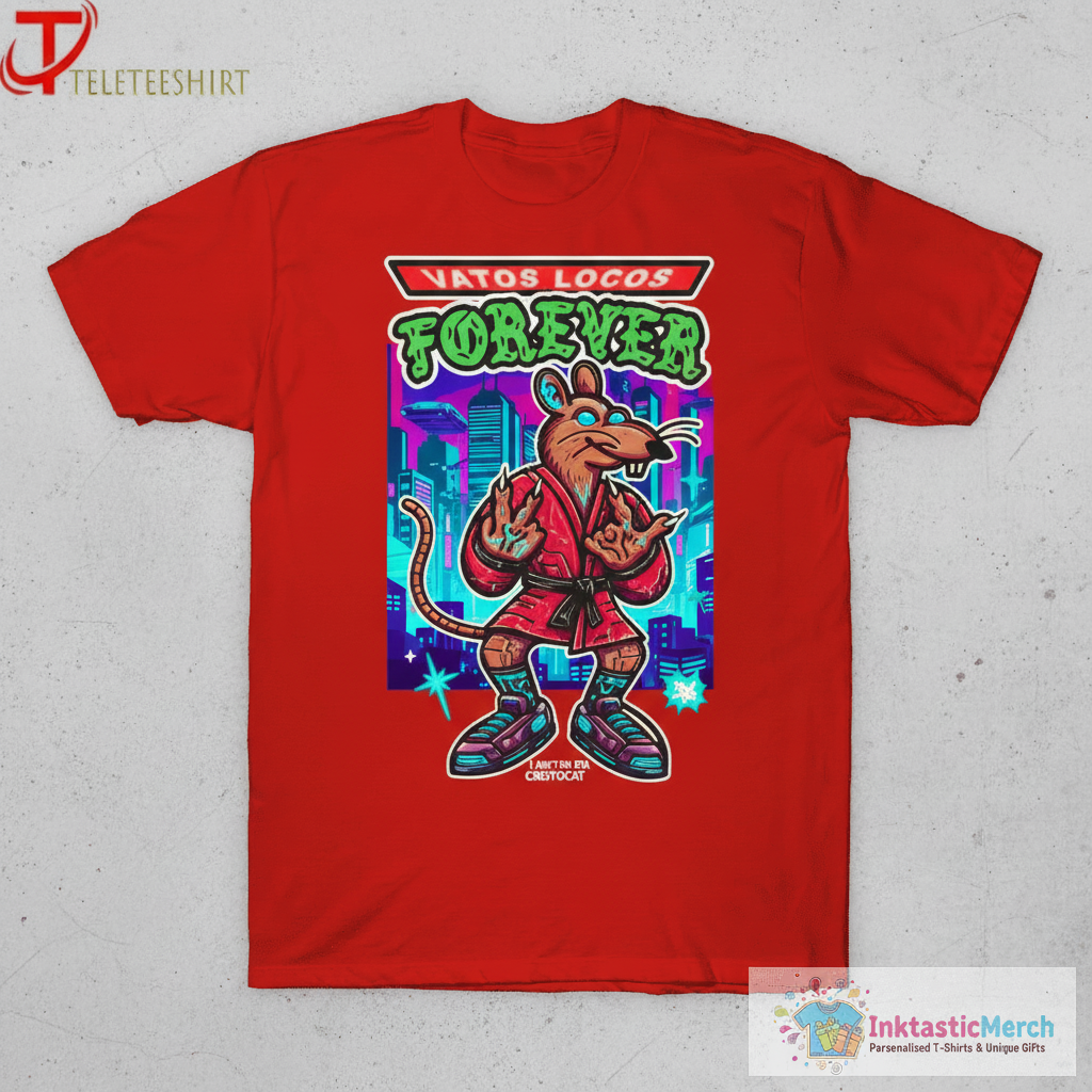 Bring your style to life with the Vatos Locos Forever I Ain’t No Rata Cristocat T-shirt today!