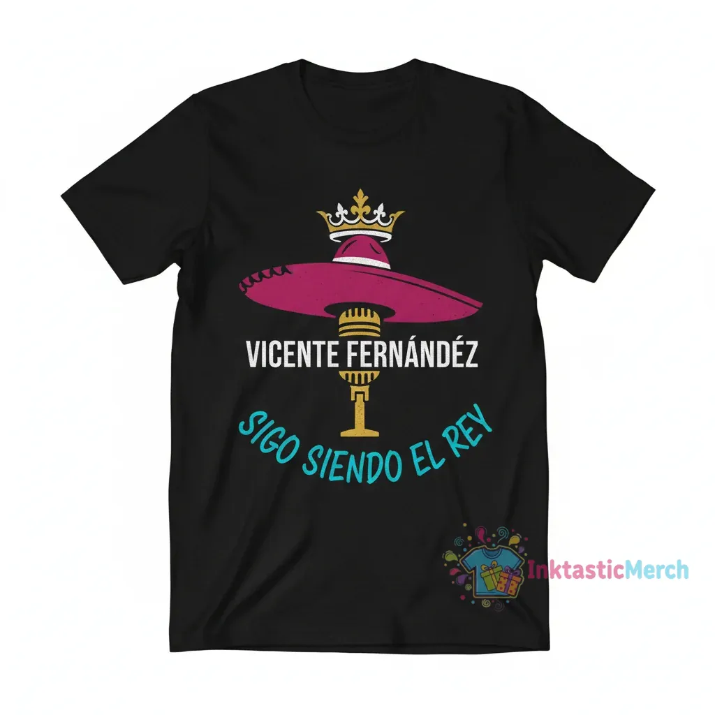 Celebrate the enduring legacy of Vicente Fernandez with this high-quality graphic tee, crafted from 100% ring-spun cotton for exceptional comfort and longevity. Designed with a modern retail fit and featuring side-seamed construction and shoulder-to-shoulder taping, this shirt offers both style and durability. Discover more quality apparel at inktasticmerch.com.