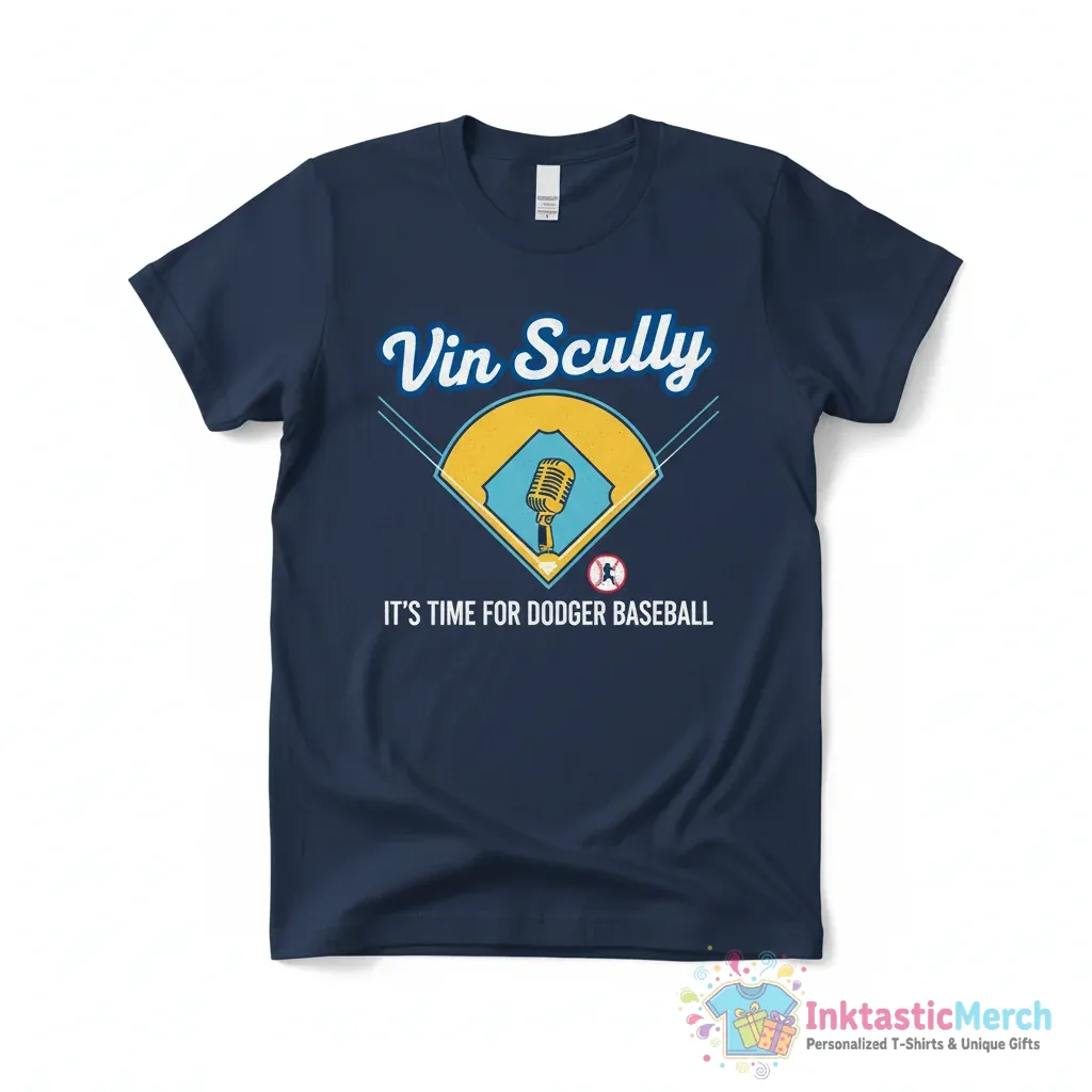 Step up to the plate with the Vin Scully Quote It’s Time for Dodger Baseball shirt. Crafted with premium materials, this tee offers exceptional comfort and lasting style, making it a must-have for any fan wanting to show their love for the Dodgers and the legendary Vin Scully. You can find this and more at inktasticmerch.com.