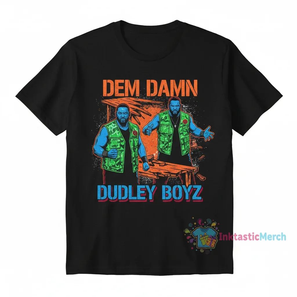 Discover the Vintage Dem Damn Dudley Boyz tie-dye t-shirt, a wearable piece of art crafted from the softest, most breathable fabric for unparalleled comfort. This shirt features exceptional original artwork with luxuriously buttery softness and vibrant, fade-resistant colors, ensuring it remains a favorite for years to come, all available at inktasticmerch.com.