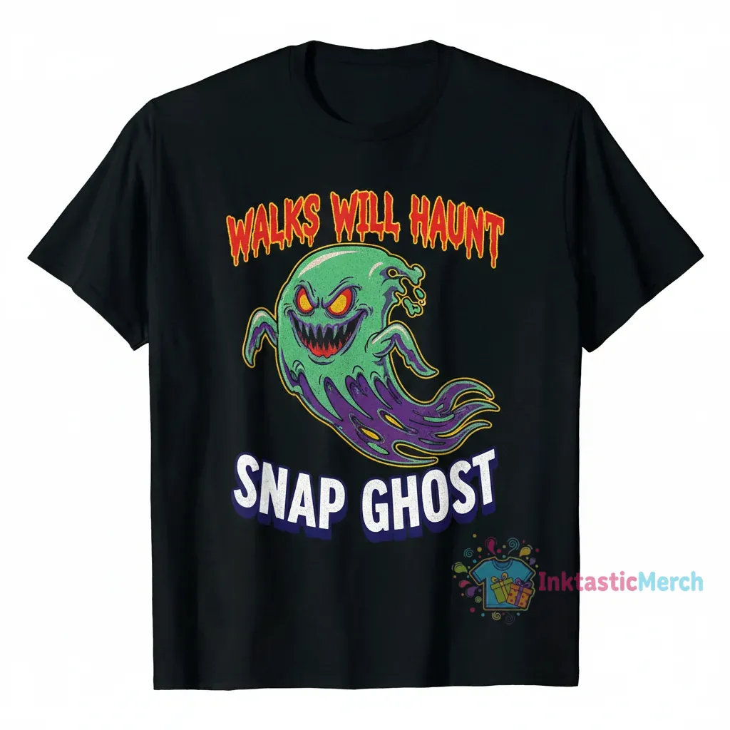 Embrace the mysterious with the ‘Walks Will Haunt: The Ethereal Ghost Snap Shirt’, a wearable piece of art crafted from a premium blend of fabrics for exceptional durability and a soft feel. This design, inspired by folklore and the gentle melancholy of twilight, offers unparalleled comfort with its buttery softness and breathable fabric, perfect for those who appreciate artistry in the unconventional. Discover more unique designs at inktasticmerch.com.