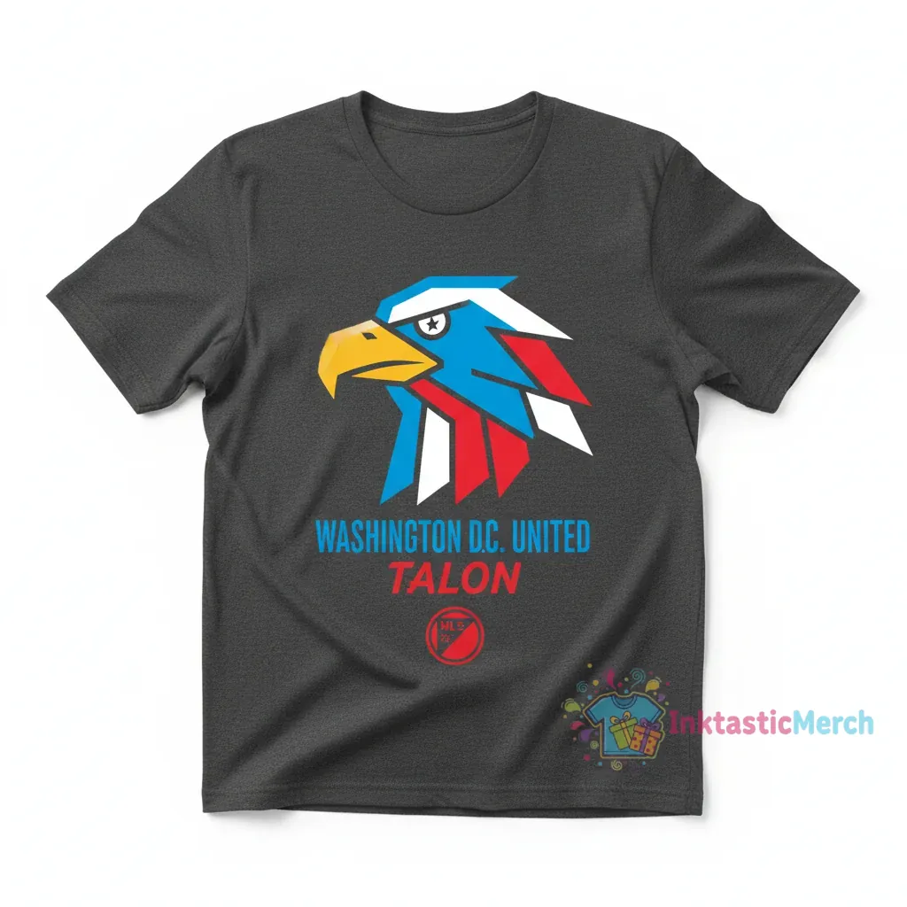 Showcase your D.C. United pride with this Washington D.C. United Talon mascot shirt, a symbol of strength and soaring spirit. Crafted with premium comfort and expert quality, this tee features expertly printed original artwork and durable stitching from InktasticMerch, ensuring a consistent fit and long-lasting wear.