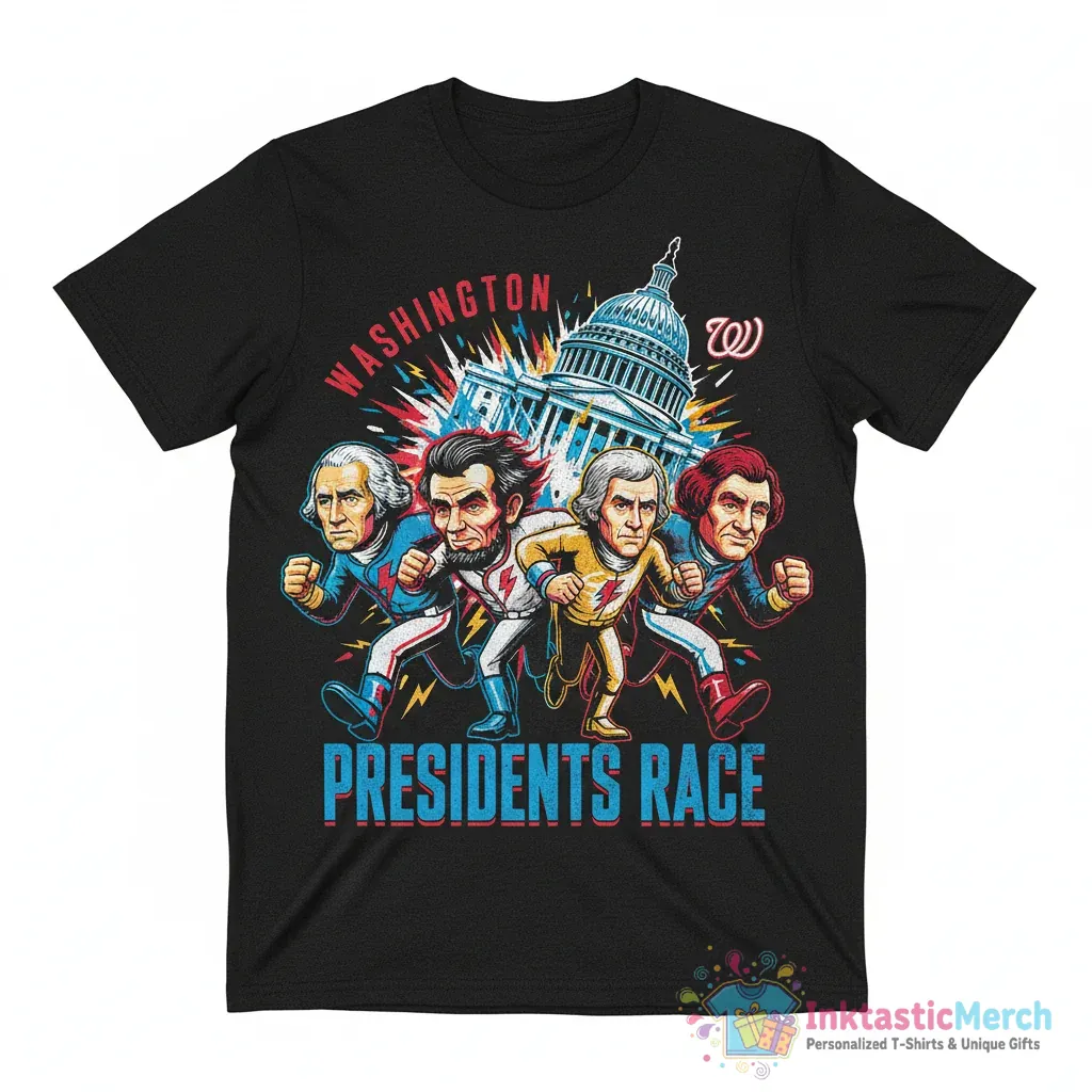 Show your love for the Washington Nationals and their iconic Presidents Race with this awesome shirt! It’s the perfect way to celebrate game day or just rep your favorite team in comfort. This tee features a cool design inspired by the beloved Presidents Race, making it a must-have for any dedicated fan.