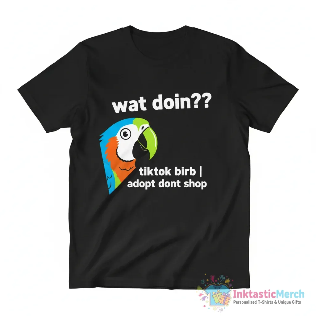 Bring your style to life with the “wat doin??” TikTok birb T-shirt today!