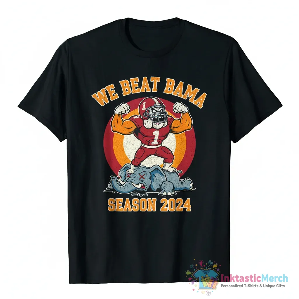 Show your team spirit with the ultimate We Beat Bama shirt from InktasticMerch. Made with high-quality materials for a comfortable, relaxed fit, this shirt features a durable print to celebrate your victory in style. It’s the perfect choice for game day, parties, or simply repping your team around town.