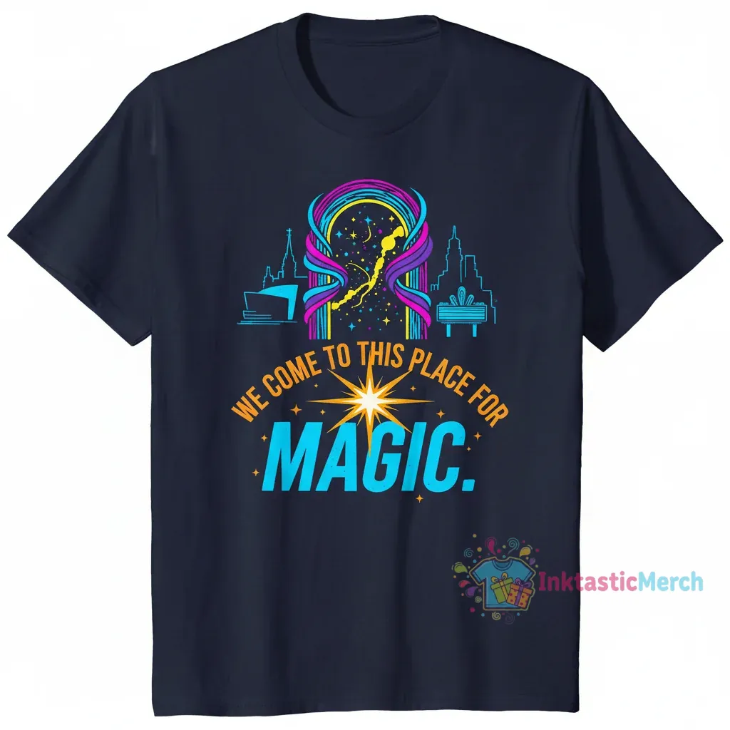 Experience the magic of the “We Come to This Place for Magic” shirt, designed to capture the anticipation of extraordinary moments. Crafted with meticulous attention to detail and made from premium, ultra-soft fabric, this shirt embodies wearable art. Explore more unique designs and quality apparel at inktasticmerch.com.