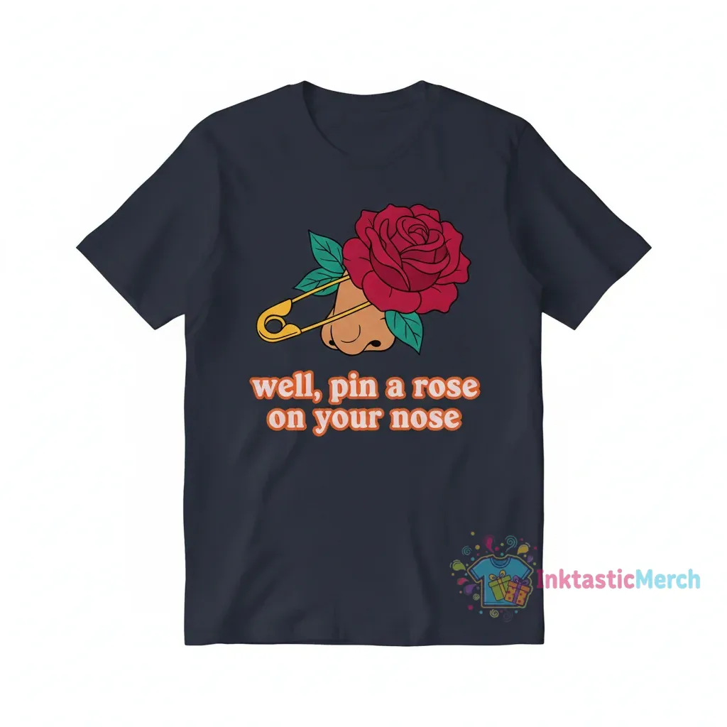 The “Well pin a rose on your nose” Essential T-shirt is more than just casual wear; it’s a statement piece. Its unique graphic design is sure to catch the eye and spark conversations. The modern, unisex fit ensures it looks great on everyone, effortlessly elevating your favorite jeans or layering under a jacket. It’s the perfect way to add a touch of artistic personality to any outfit, making the ordinary extraordinary.