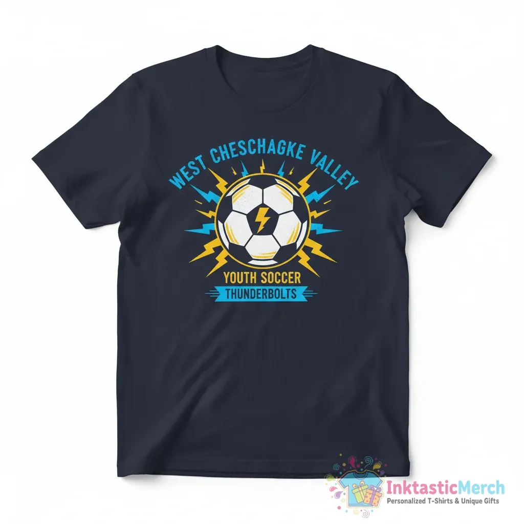 Show your pride for the West Chesapeake Valley Thunderbolts with this essential youth soccer t-shirt! Designed for young athletes and fans, this tee is perfect for cheering from the sidelines or practicing your moves on the field. It features a vibrant design that celebrates the spirit of the West Chesapeake Valley Thunderbolts, making it a must-have for any supporter.