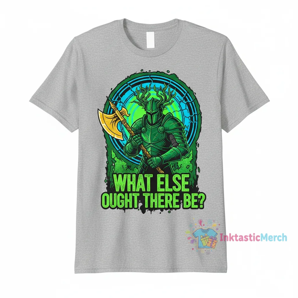 The “What Else Ought There Be? – Green Knight” design is crafted to be a unique statement piece that effortlessly elevates your casual wardrobe. Its distinctive artwork ensures you stand out from the crowd, offering a touch of artistic flair that’s both sophisticated and approachable. The modern, unisex fit makes it a versatile addition, perfect for pairing with jeans, shorts, or layering under a jacket. It’s designed for those who appreciate art that sparks imagination and isn’t afraid to show it.