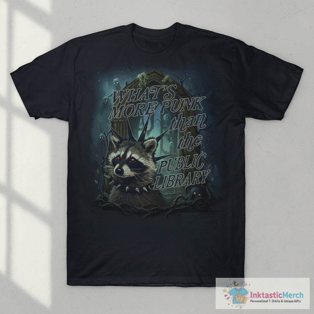Unleash your inner rebel with the “What’s More Punk Than the Public Library” T-shirt from InktasticMerch. Made from high-quality, breathable fabric, this incredibly soft tee offers ultimate comfort and durability, making it your new go-to for everyday wear. Its unique, eye-catching vintage raccoon meme design adds a playful, quirky vibe, celebrating knowledge and wild charm.