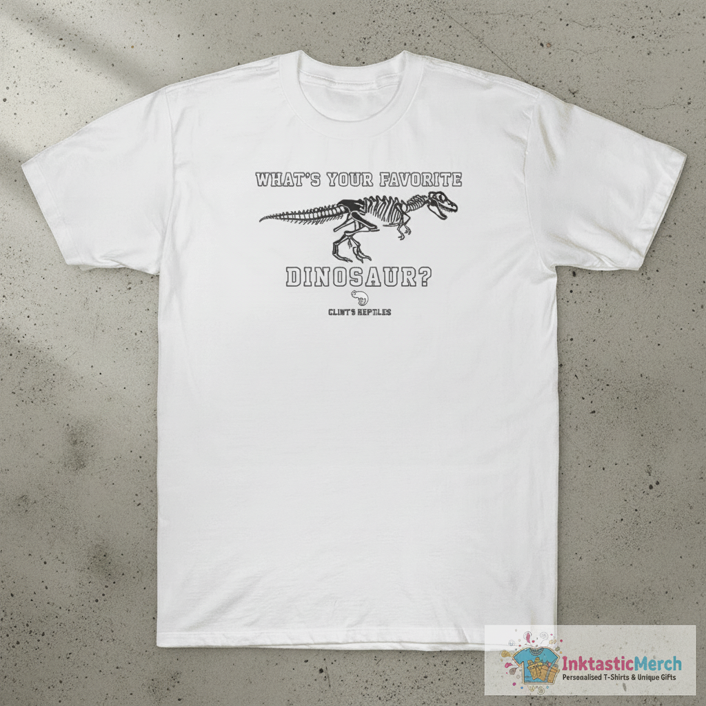 Bring your style to life with the What’s Your Favorite Dinosaur Clint’s Reptiles Shirt today!