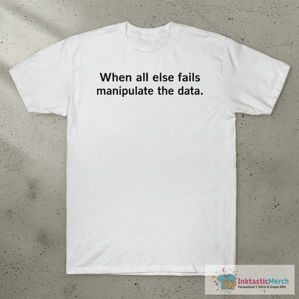 Unleash your inner data wizard with the “When All Else Fails Manipulate The Data” t-shirt from InktasticMerch. Crafted with ultra-soft, high-quality fabric, this statement piece offers all-day comfort and style. It’s a unique and eye-catching design perfect for anyone with a passion for numbers and a great sense of humor.