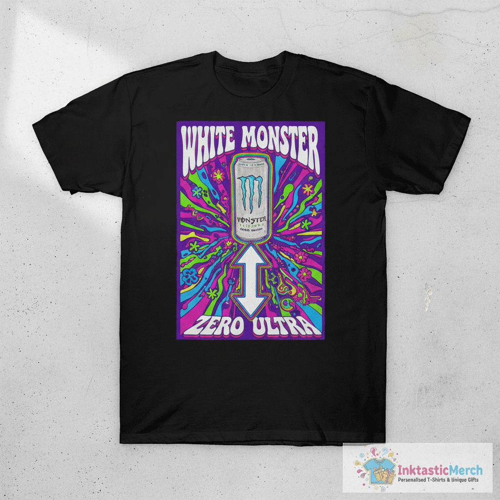 Show off your love for extreme energy with this White Monster Energy Zero Ultra T-Shirt from inktasticmerch.com. Made with high-quality, breathable fabric for ultimate comfort, this tee features the iconic Monster Energy Zero Ultra branding, perfect for expressing your energetic lifestyle and bold attitude.
