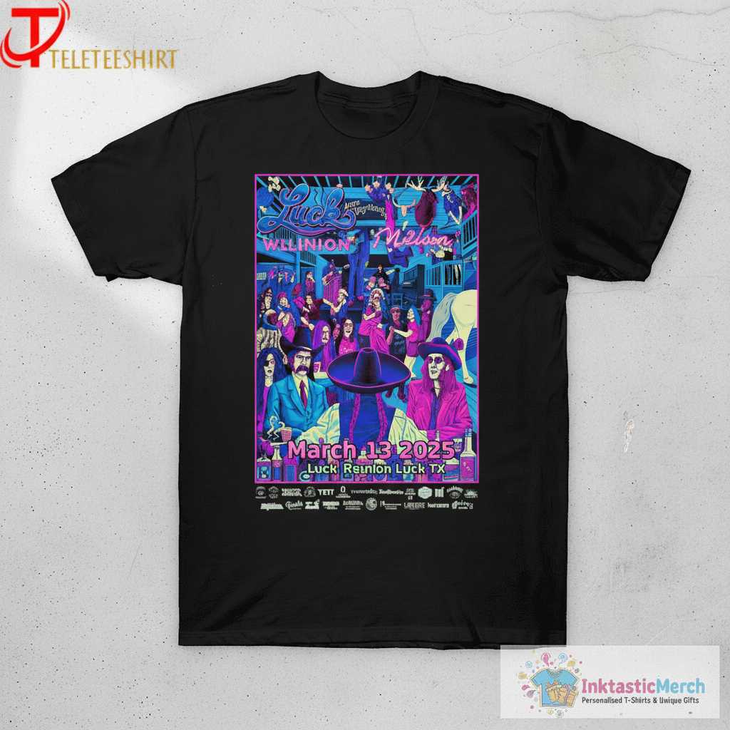 Show your love for country music legend Willie Nelson with this exclusive T-shirt celebrating the March 13, 2025, Luck Reunion event in Luck, Texas. Crafted for ultimate comfort and style, this tee features ultra-soft, high-quality fabric and a relaxed unisex fit, making it a staple for any fan. Explore more quality apparel from <a href="InktasticMerch“>InktasticMerch.