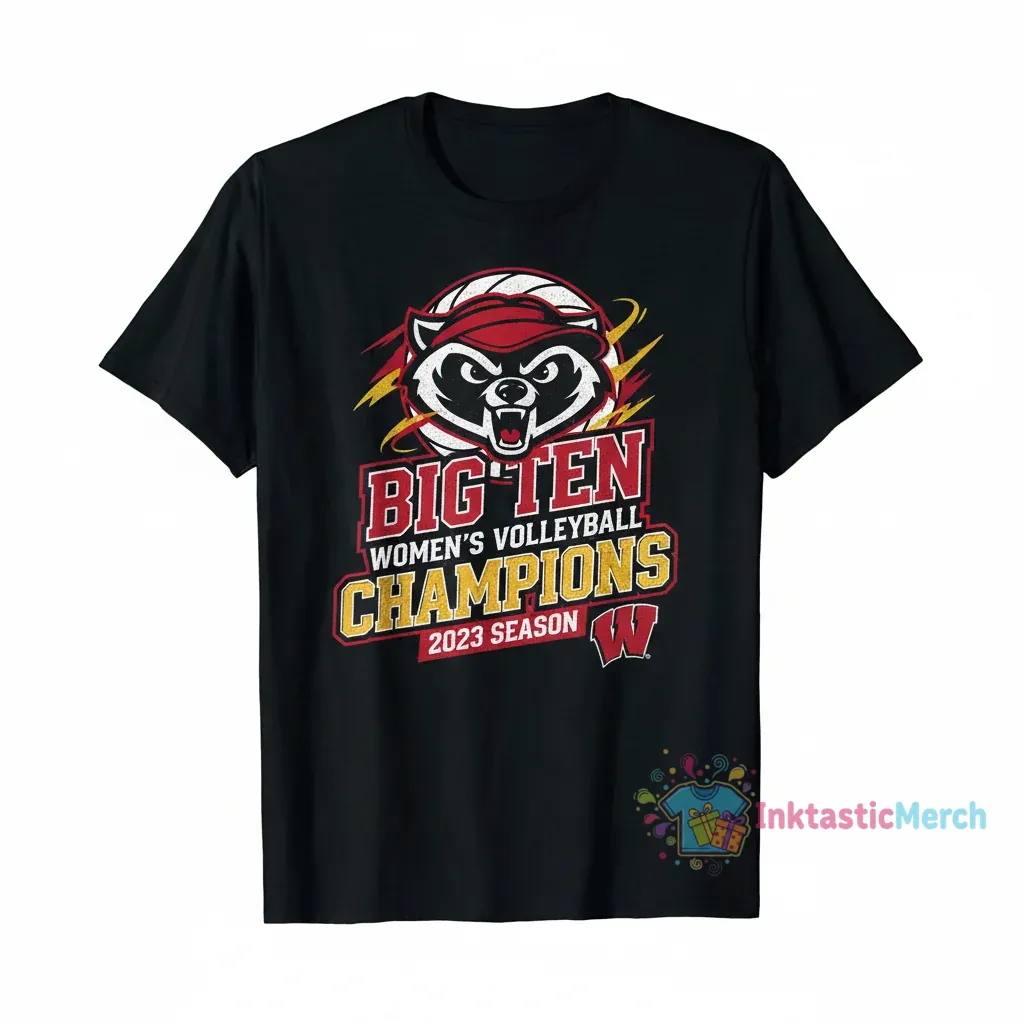 Celebrate the incredible victory of the Wisconsin Badgers with this exclusive Big Ten Women’s Volleyball Champions T-shirt! This shirt is the perfect way to show your pride and commemorate their amazing season. Designed for true fans, it features bold graphics that proudly declare their championship status. Wear it to games, watch parties, or just out and about to let everyone know you’re a proud supporter of the Wisconsin Badgers. This is more than just a shirt; it’s a statement of your dedication to a winning team.