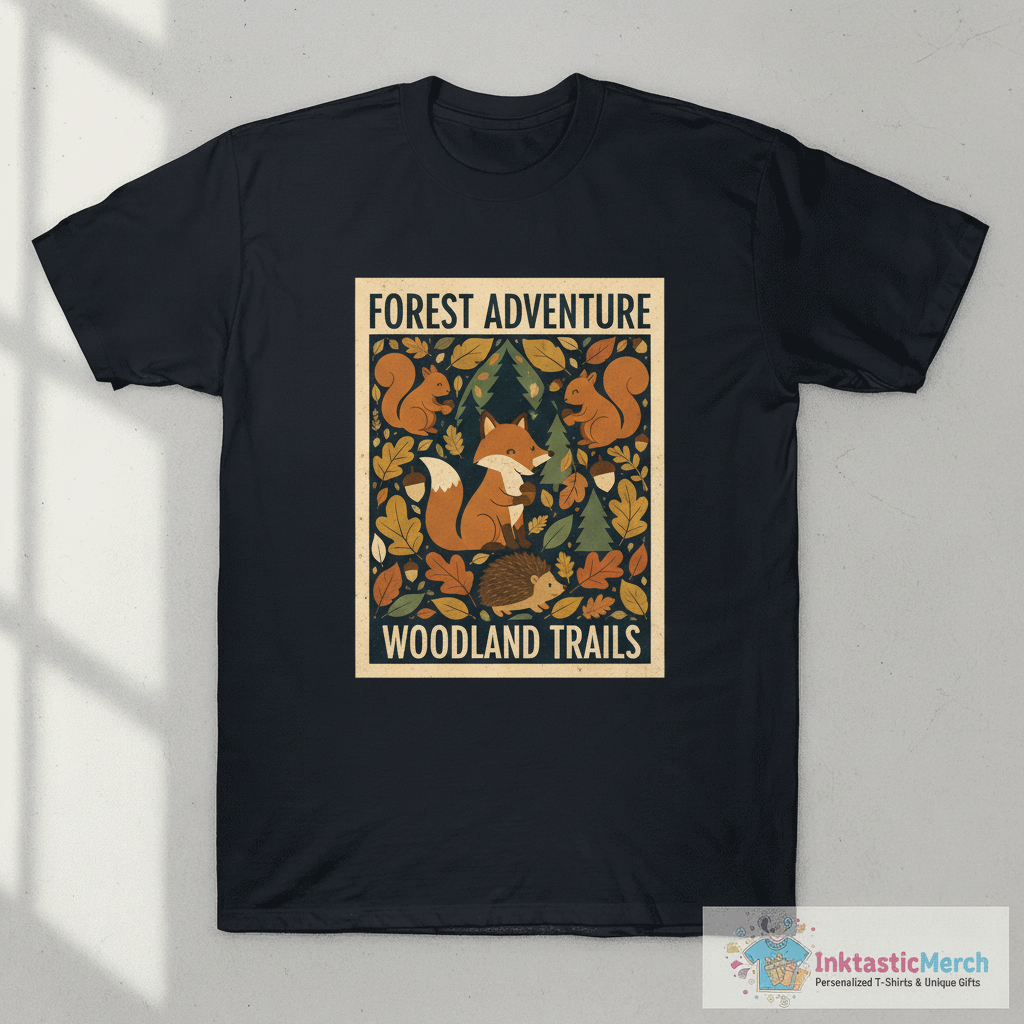 Bring your style to life with the Woodland Creatures & Leaves Pattern T-Shirt today!