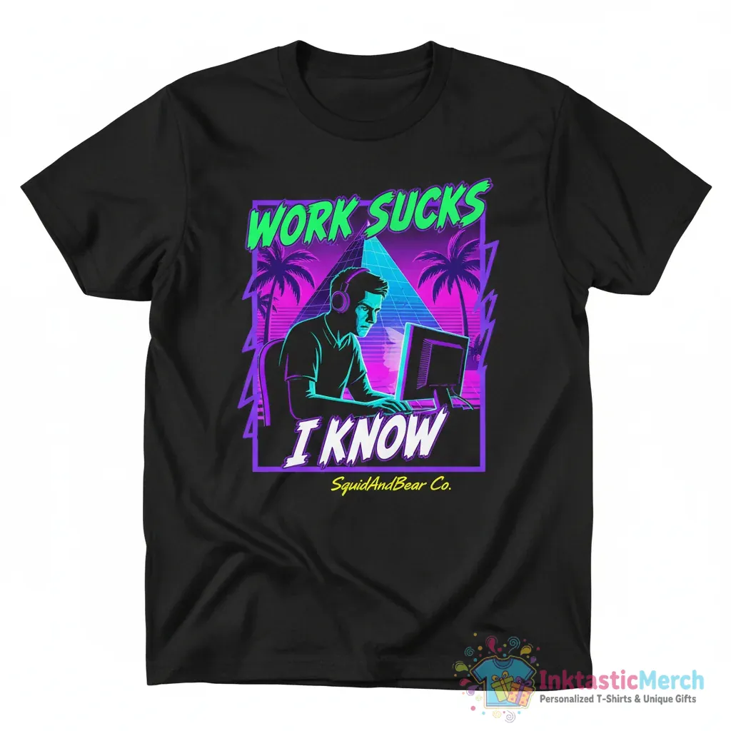 Bring your style to life with the Work Sucks, I Know, Black T-shirt today!