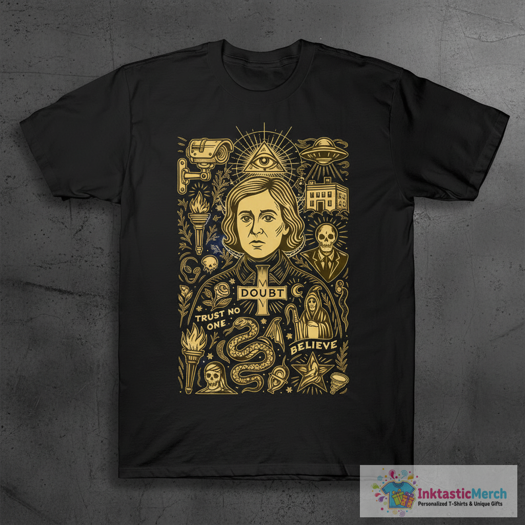 The Conspiracy Theory motif on this Worship Nothing T-Shirt makes a powerful statement. Featuring an intriguing graphic, it’s sure to spark conversations wherever you go. Stand out from the crowd and let your fashion be a reflection of your individuality.