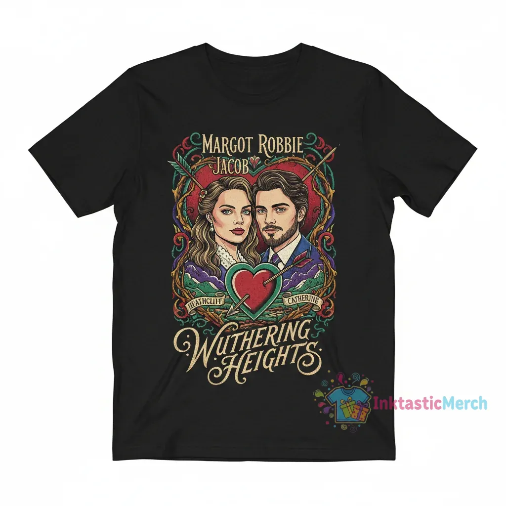 This t-shirt is more than just apparel; it’s a statement piece that blends the dramatic allure of Wuthering Heights with the star power of Margot Robbie and Jacob Elordi. The design captures the passionate and moody essence of the story, making it a must-have for anyone who loves a good romance with a touch of darkness. It’s designed to be a conversation starter, bringing a piece of cinematic and literary magic to your everyday wardrobe.