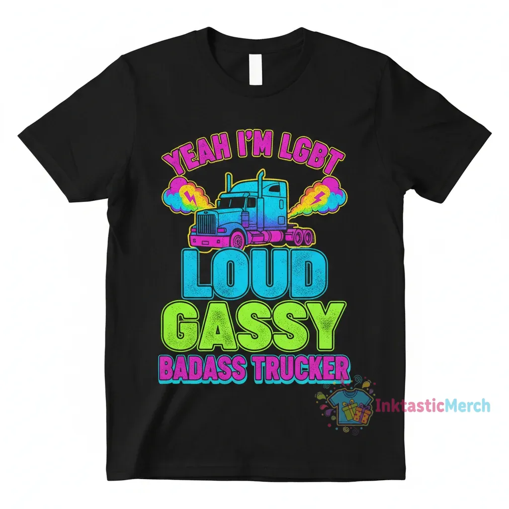 Embrace your unique spirit with the “Yeah I’m LGBT Loud Gassy Badass Trucker Shirt” from InktasticMerch. This shirt is crafted from a premium blend for buttery softness and features a durable, high-quality print of original artwork, ensuring a comfortable and stylish declaration of who you are with every mile.