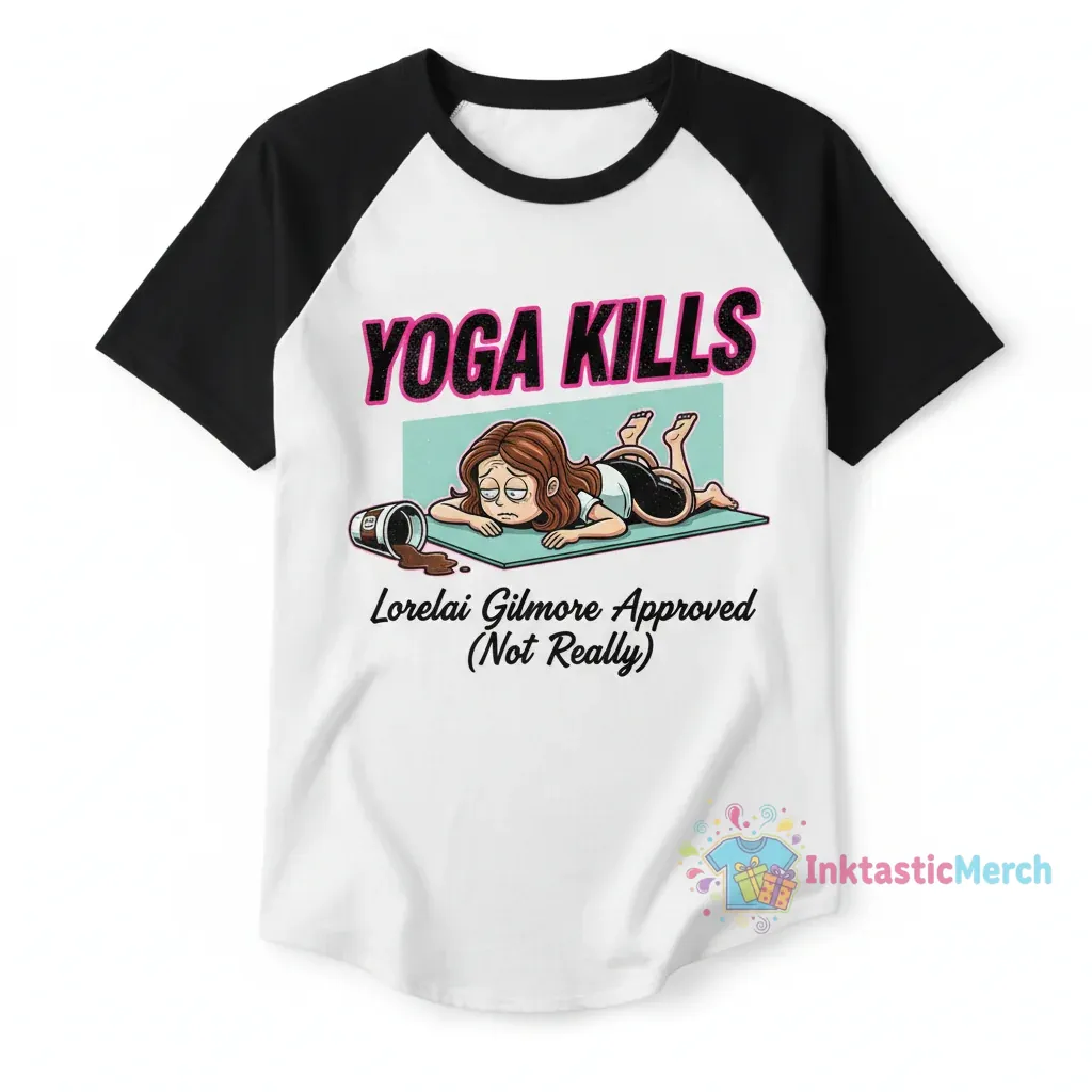 Channel your inner Gilmore Girl with the ultimate comfort tee inspired by Lorelai Gilmore’s iconic “Yoga Kills” sentiment. Experience unparalleled softness and breathability with this super-comfy baseball tee, crafted from a premium blend of fabrics for all-day comfort. Discover more versatile and stylish apparel at inktasticmerch.com.