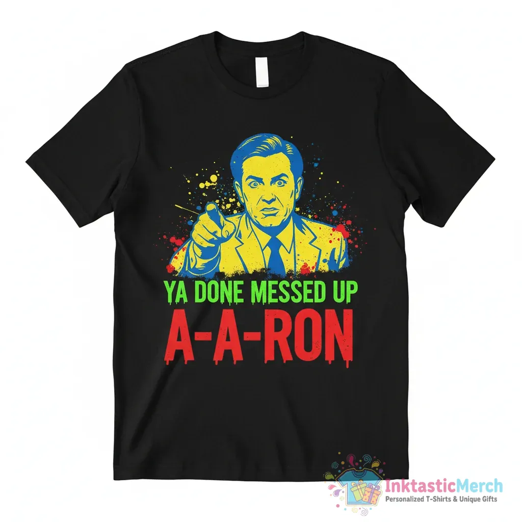 Get ready to turn heads with the You Done Messed up A-A-Ron shirt from InktasticMerch. Made from super-soft, breathable fabric, this tee brings iconic humor to your wardrobe with its eye-catching design, offering a cool, laid-back vibe perfect for any casual occasion. The high-quality material is incredibly soft against your skin, and the durable print ensures the design stays vibrant wash after wash.