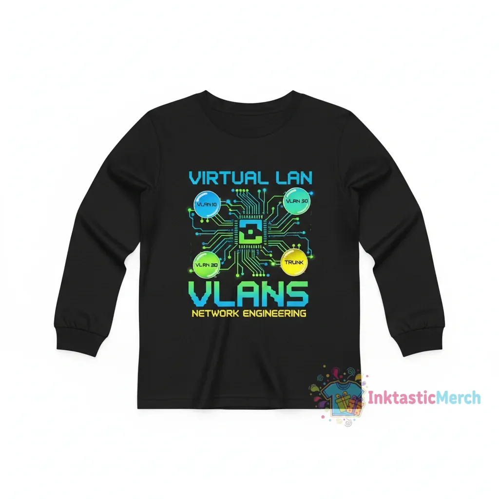 Unleash your inner tech enthusiast with this classic long sleeve t-shirt from InktasticMerch, proudly showcasing your passion for VLANs and Network Engineering. Crafted with pre-shrunk, 100% premium cotton and vibrant, eco-friendly inks, this tee offers timeless style and all-day comfort, designed to be a durable wardrobe essential.