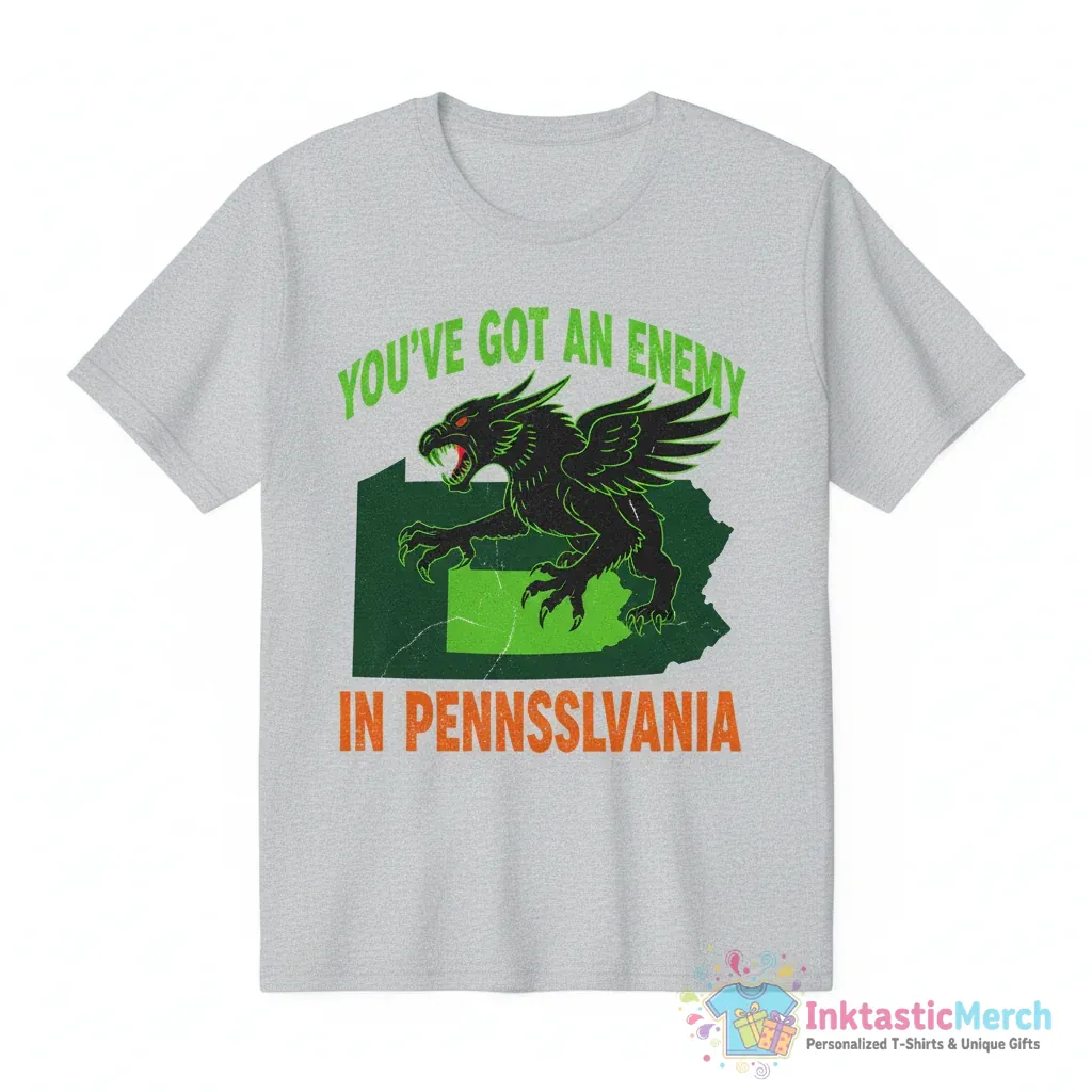Showcase your bold attitude with the “You’ve got an enemy in Pennsylvania” T-shirt from InktasticMerch. Crafted from ultra-soft, premium fabric for exceptional comfort and featuring a durable print, this tee offers lasting style. Its flattering unisex fit makes it a versatile statement piece perfect for any casual outing or concert.