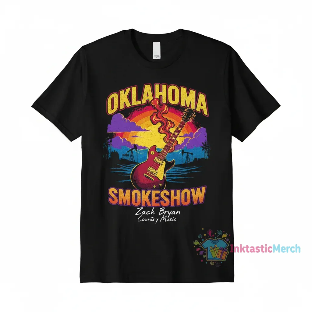 Show your love for Zach Bryan with this awesome ‘Oklahoma Smokeshow’ classic black t-shirt from InktasticMerch. Crafted from premium, ultra-soft cotton, this tee offers exceptional comfort and durability, featuring a classic fit and a vibrant print that’s built to last. It’s the perfect blend of comfort, style, and country music spirit, making it a must-have staple for any fan.